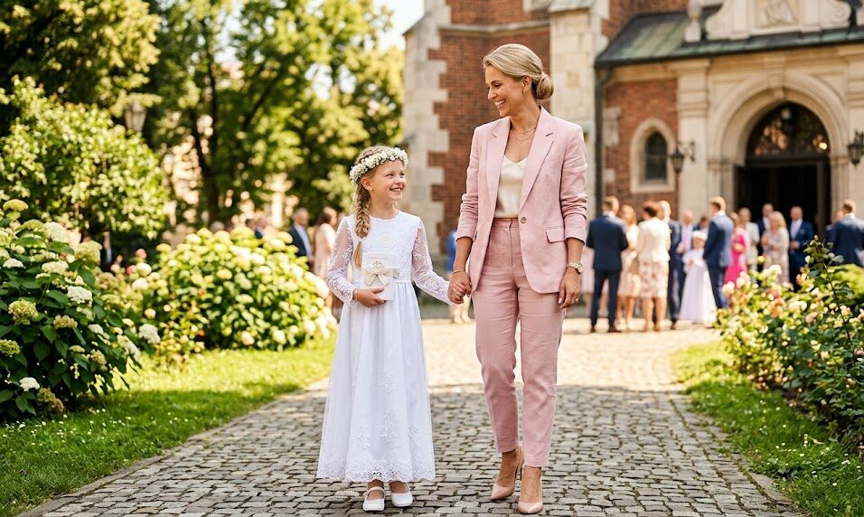 Pierwsza Komunia Święta dziecka to ogromne przeżycie dla całej rodziny, ale dla mamy to często także logistyczny i wizerunkowy maraton. Pomiędzy dopinaniem menu, odbieraniem tortu a witaniem gości, musisz znaleźć czas na to, by czuć się pięknie i komfortowo. Wybór odpowiedniej kreacji nie powinien być kolejnym powodem do stresu. W 2026 roku moda okolicznościowa bardzo sprzyja kobietom, stawiając na miękkie formy, oddychające tkaniny i fasony, które nie krępują ruchów.